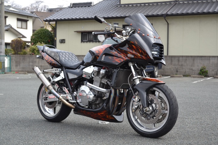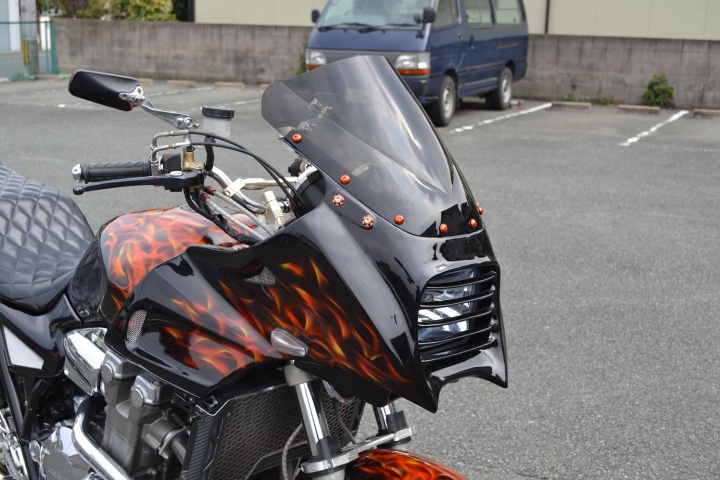 車両はCB1300です。※GPZ900R専用カウルですが、W様自らのカウルステー加工によりCB1300に装着させております。